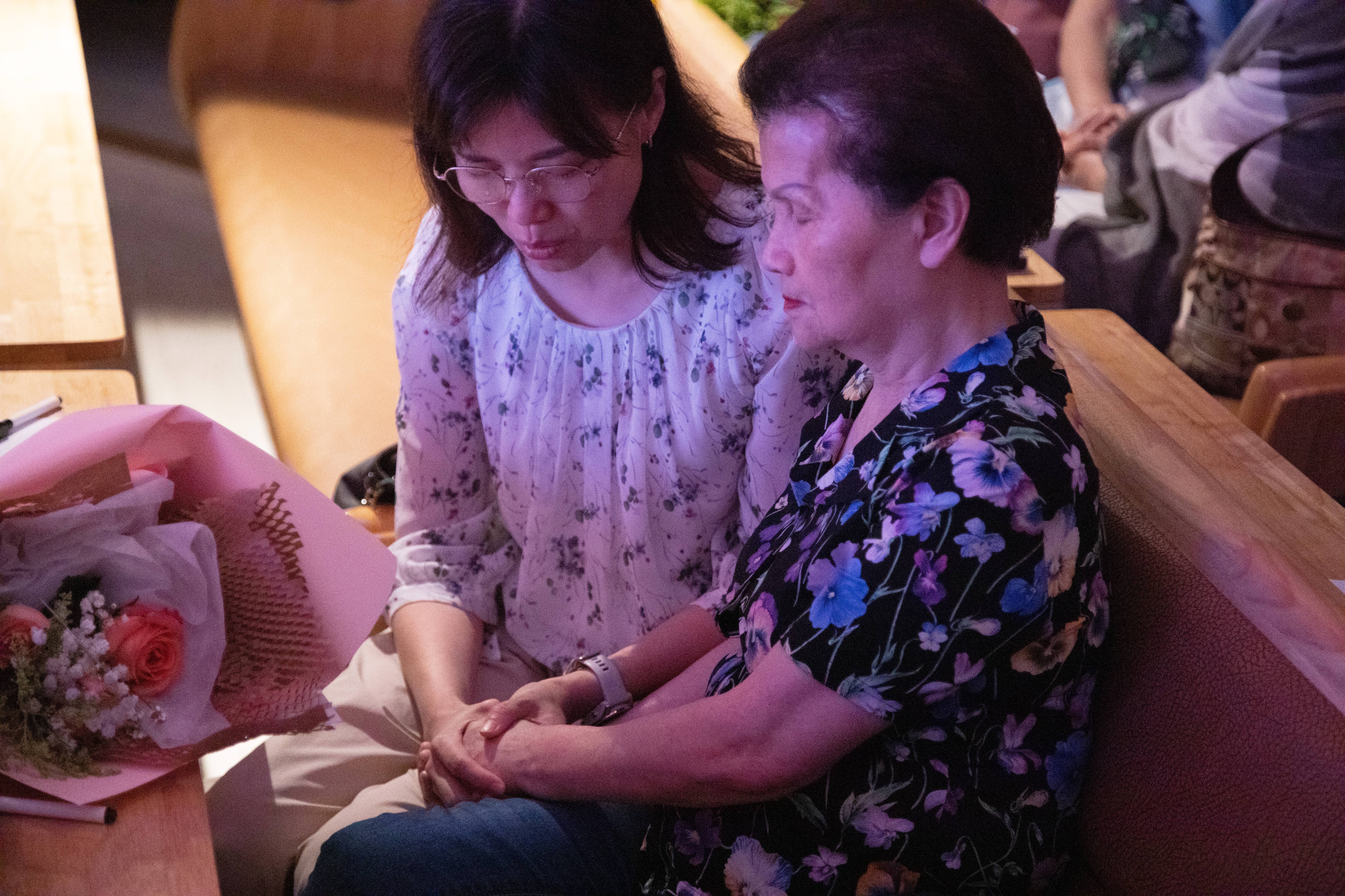 緊接著,來到活動最感人的橋段,孩子們獻上親手準備的花束,擁抱媽媽、表達愛意。場面既溫暖又驚喜,一位年長的媽媽眼角泛淚的分享:「這場活動讓我想起已故的母親,她總是默默為我們禱告,也給了我們一個幸福的家。」